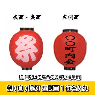 ※文字の書体、位置、大きさ等に指定はできません。すべてお任せになります。 ※価格は提灯本体+名入代です。 ※名入れ文字に「株式会社」が含まれる場合は、「(株)」となります。 ※名入文字は6字以内です。 7文字以上になる場合は、別途300円(税別)アップになります。(2行に分けて書きます) ※提灯のサイズはカタログ表記です。数ミリ単位で違うことがあります。 ※納期は受注後約3週間かかります。(お盆や年末年始などの長期休暇は除きます) 名入れ内容によりそれ以上かかることがございます。 |