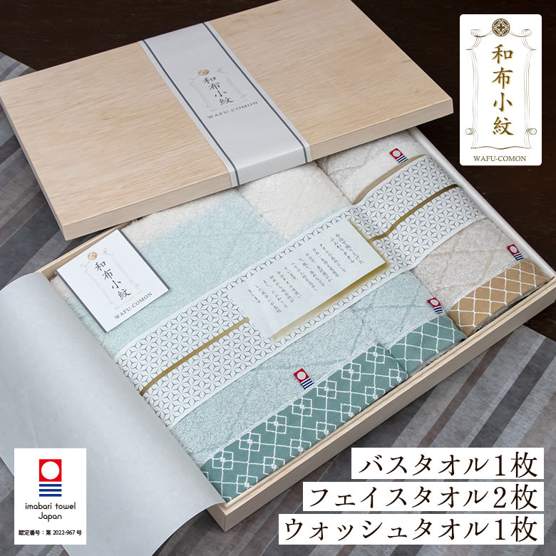 今治タオル ギフト 小紋 和柄 内祝い 香典返し お礼 お返し 今治 木箱 贈り物 贈答用 プレゼント バスタオル 1 フェイス 2 ウォッシュ 1