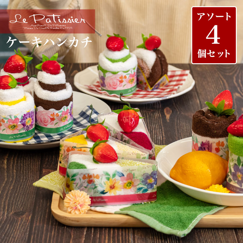 タオルケーキ おしゃれ お配り プチギフト ハンカチ タオルハンカチ 女性 男性 子供 プレゼント 誕生日 退職 お礼 ホワイトデー お返し 雑貨 4個 セット
