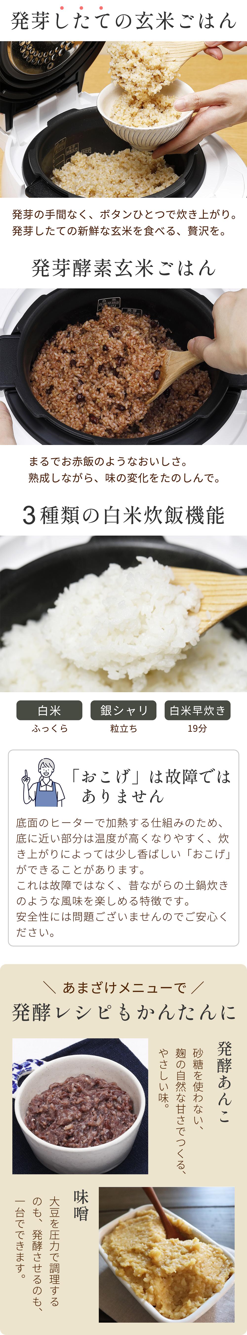 炊き上がり直後から、そのまま発芽酵素玄米としてお召し上がりいただけます。