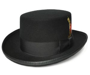 ◆クラウンが平らなトップハットの様なフェルトハットです。トップハットはクラウンの筒が高い帽子ですが、こちらは約10cmと標準的な高さで普段でも被れるデザインです。