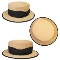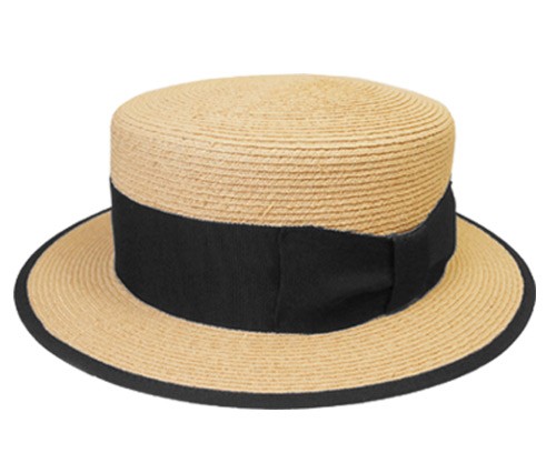 ◆ラフィア素材で仕立てたカンカン帽です。季節感のある天然素材でシンプルなデザインながら味わいを感じさせる本格仕様。ツバ先のパイピングで淡い色味の帽子の輪郭を際立たせたメリハリのあるデザインですカジュアルスタイルには勿論の事、和服にもとてもかっこよく仕上がります。春夏シーズンらしく、おしゃれの小道具として幅広いシーンでご使用頂けます。