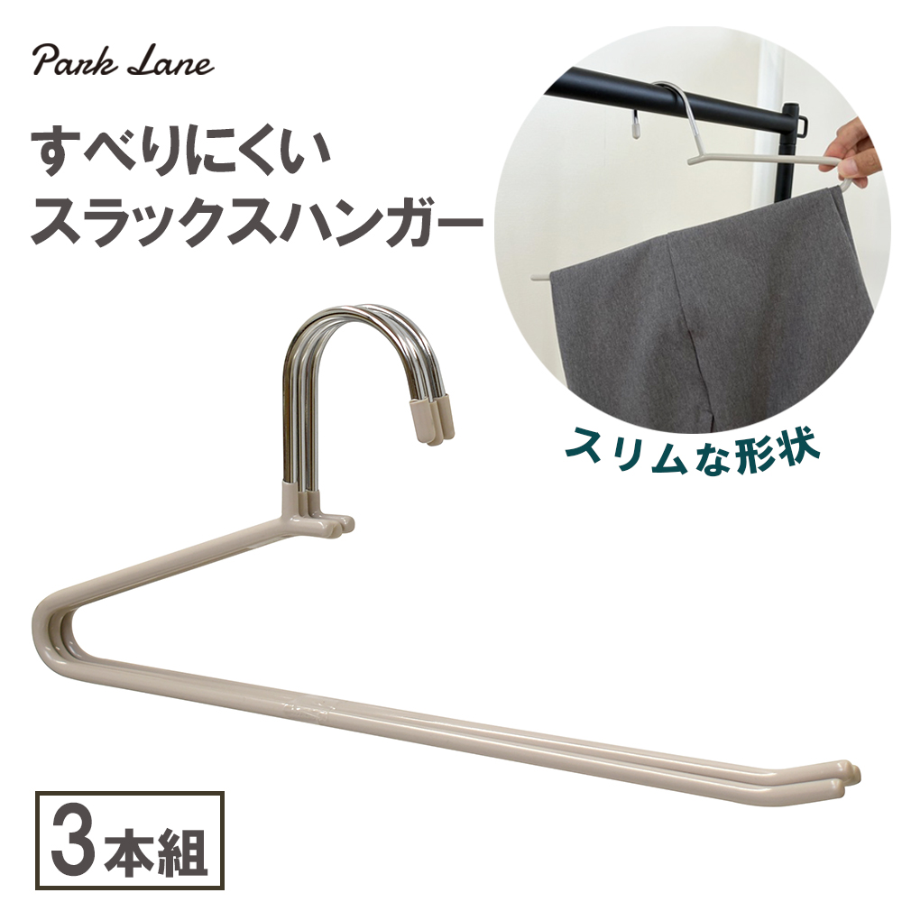 パークレーン すべりにくいスラックスハンガー 3本組 グレージュ 衣類ハンガー クローゼット収納 衣類収納 すべらない 省スペース 洋服 ハンガー スリム 薄型