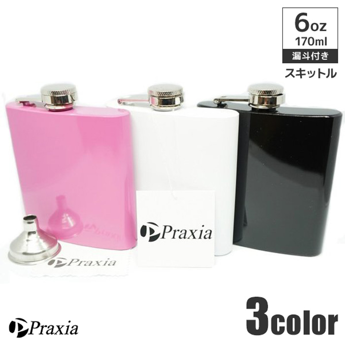 スキットル スキットルボトル ヒップフラスコ 日本酒 ウイスキー 6oz 6オンス 170ml カラー ブラック他 漏斗 付属 Praxia