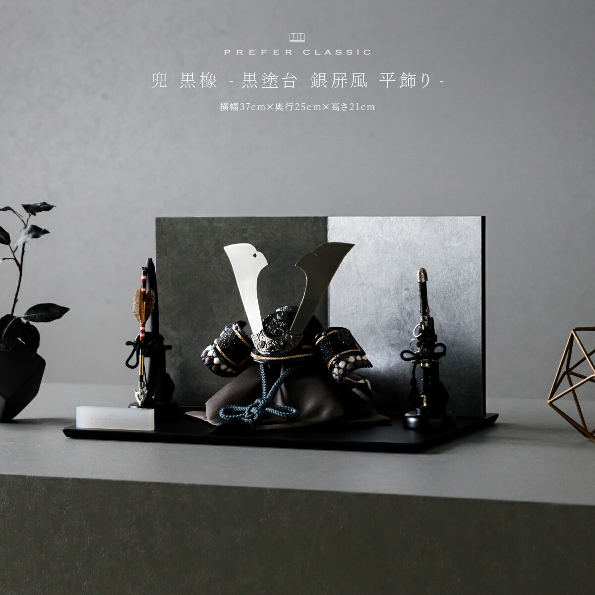 五月人形 おしゃれ 兜飾り 兜 モダン 高級 5月人形 PREFER CLASSIC 五月人形 黒塗台 シルバー屏風 平飾り 弓太刀 黒龍5号 黒橡 中鍬形 オプション ケース