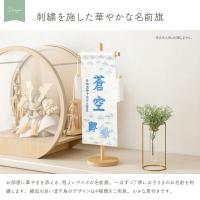 波千鳥柄を施した、コンパクトな中サイズ名前旗。おしゃれでモダンな名前旗はおめでたい日にぴったり。インテリアを損なわず飾れるサイズ感です。当店オリジナル兜鎧『ぷりふあ五月人形』とも相性抜群。兜飾りや鎧飾り、室内鯉のぼりと一緒に飾れば、こどもの日や端午の節句を盛り上げてくれます。