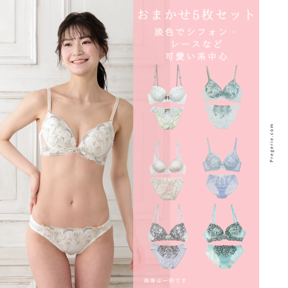 ブラセット 福袋 かわいい フェミニン 5枚組 ワイヤー ブラジャー ショーツ レディース 女性 下着 上下セット ランジェリー まとめ買い 20代 30代 40代 50代