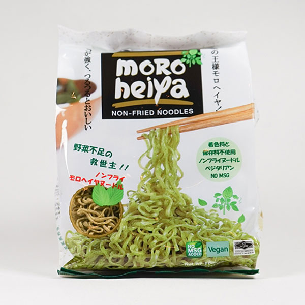 タイで栽培されたモロヘイヤを練り込み、ノンフライ製法で風味を生かしています。