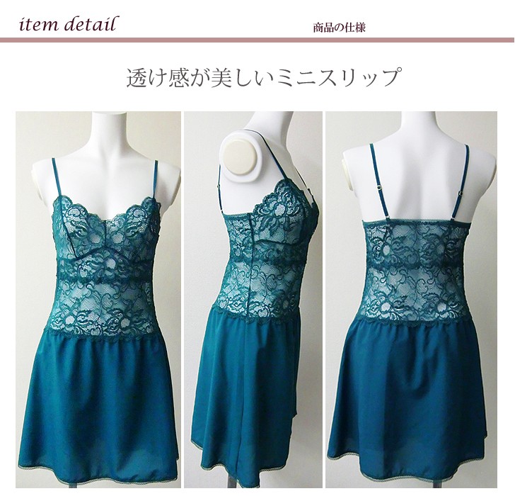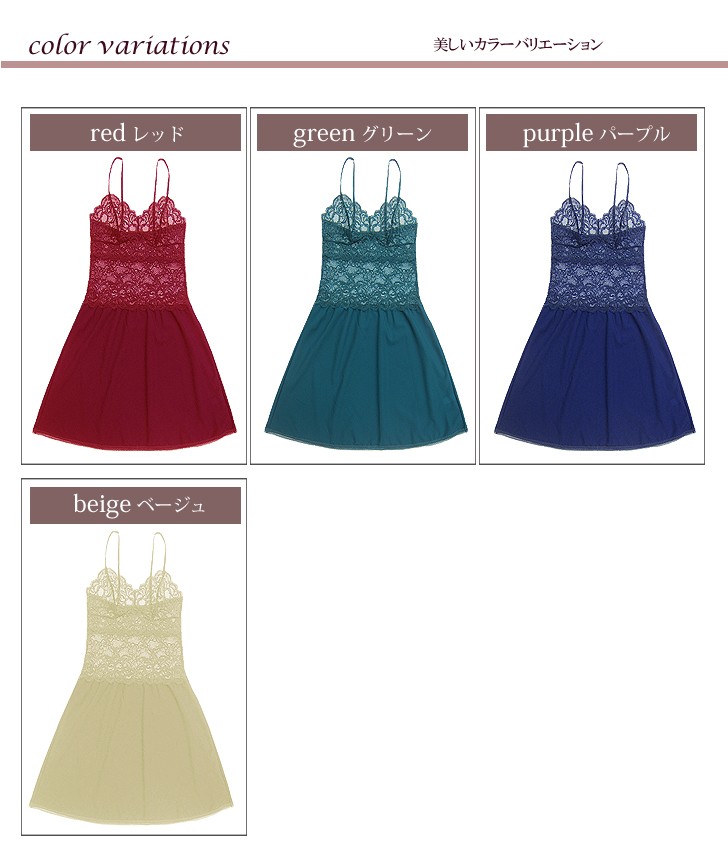 ミニスリップ セクシー レース レッド パープル グリーン ランジェリー 女性 ナイトウエア インナー レディース 下着 肌着 寝るとき カサブランカ 30代 40代