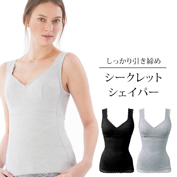 シェイパー しっかり引き締め レース シークレットシェイパー グレー ブラック 補正 姿勢 矯正 補整下着 下着 引締め 着痩せ 着圧 通販 レディース 30代 40代