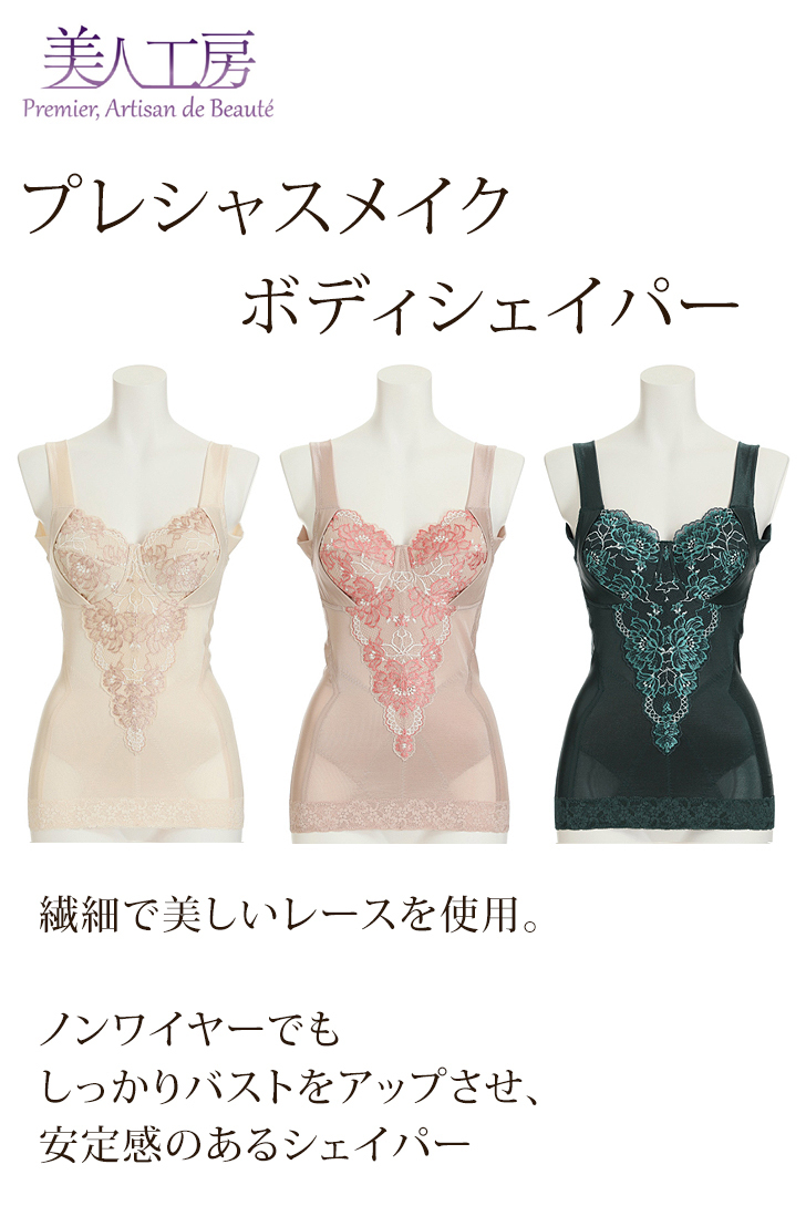 ボディシェイパー S M ボディメイク 補整 補正 アンダーウエア ベージュ ローズ グリーン 下着 通販 レディース 美人工房 プレシャスメイク プルミエ