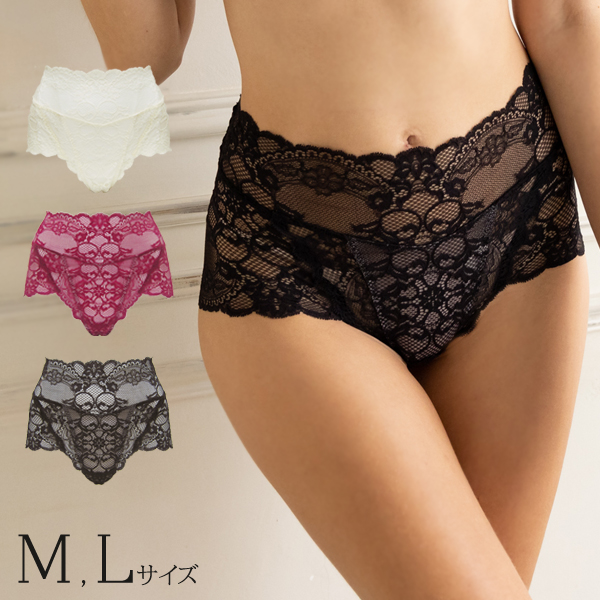 美しく透け感のある美しいレースを使用した深丈タイプのショーツです。