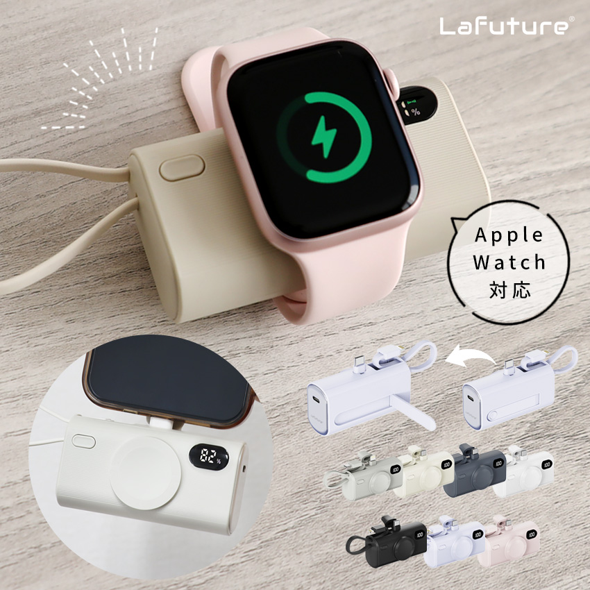 モバイルバッテリー iphone 小型 3台同時充電 Apple Watch 充電器 5000mah 大容量 軽量 ワイヤレス充電器 スタンド付き iPad Android type-c スマホ充電器 最新OS対応 一体型 急速充電 直挿し コードレス おしゃれ 残量表示 PSE認証済 Lafuture アップルウォッチ充電器