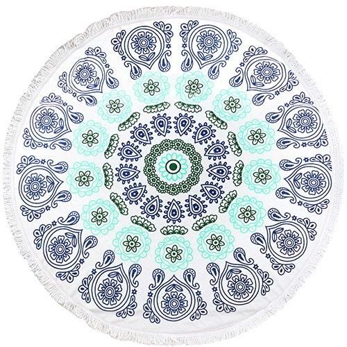 フリンジ付きペイズリー柄のラウンドビーチタオル