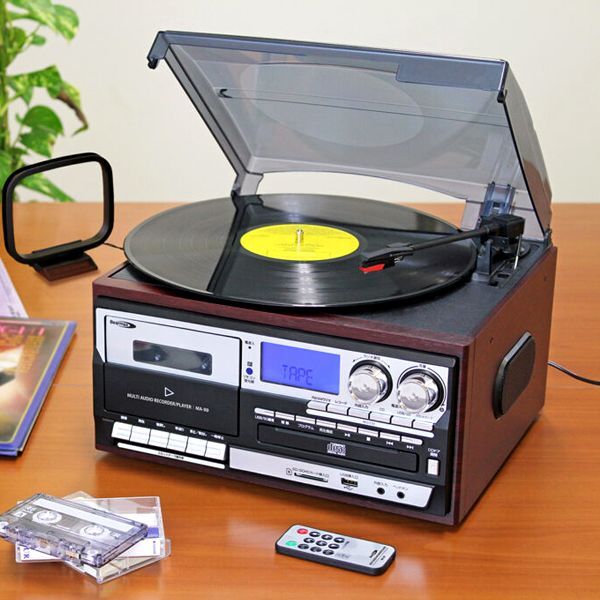 ■付属品:リモコン、AMループアンテナ、交換用レコード針、45回転レコード用アダプタ、ACアダプタ、取扱説明書