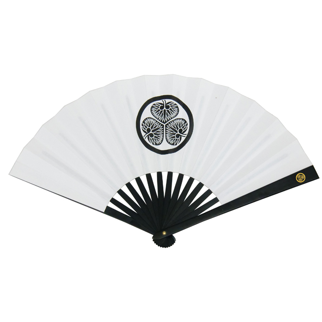 鉄扇8寸/徳川家康 金家紋入(扇子袋付き 白鉄扇 尾形刀剣 武将 丸に三つ葉葵 徳川葵 しかみ像 花押 縁起物 出世栄達 護身用 外国人 お土産 マツジュン)