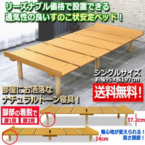 高さ調整できるメラミンすのこベッド[シングル・ナチュラル] (送料無料 組立式 敷布団 マットレス 北欧カラー 高品質 リーズナブル 通気性)