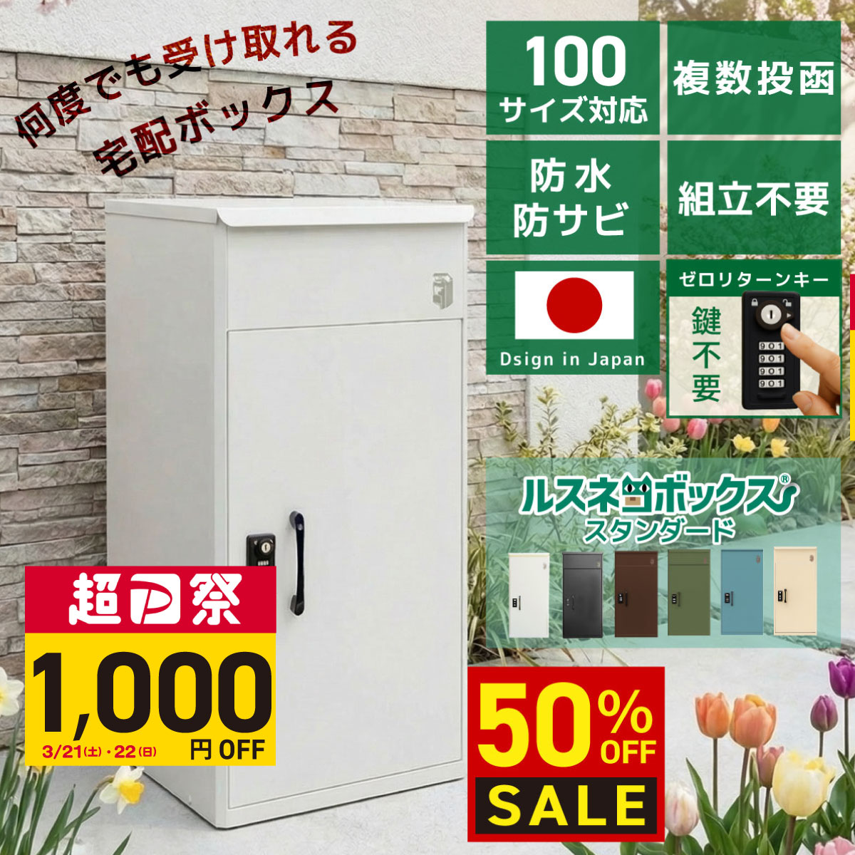 宅配ボックス 戸建 大型 防水 屋外 複数受取 大容量 置き配 かっこいい おしゃれ ルスネコボックス 鍵不要 ゼロリターンキー