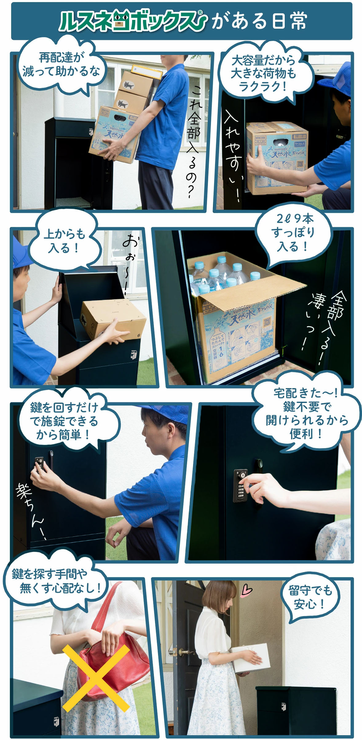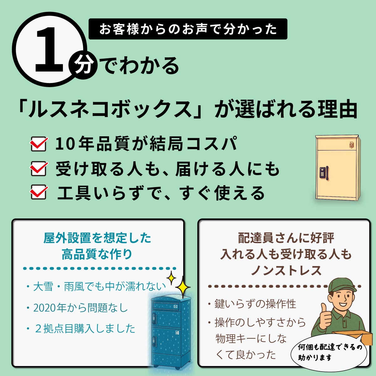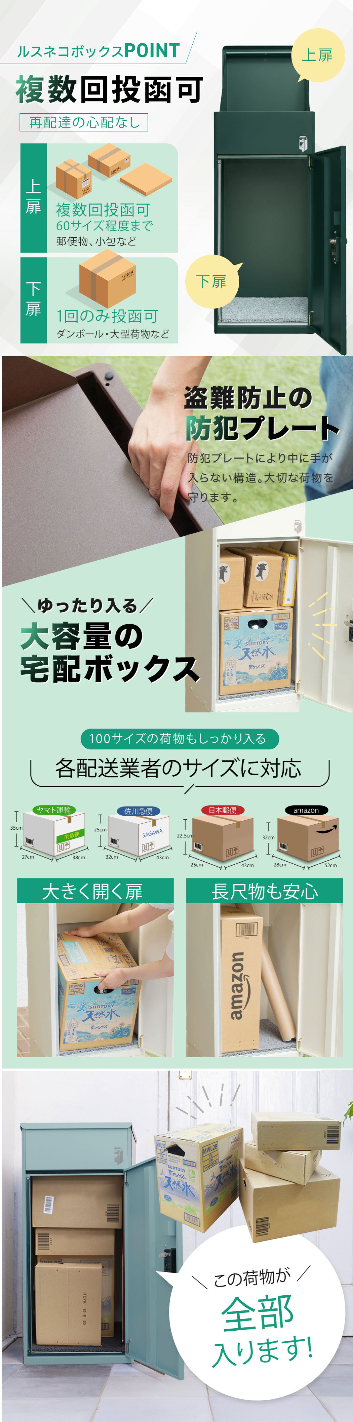 宅配ボックス 戸建 大型 防水 屋外 複数受取 大容量 置き配 かっこいい おしゃれ ルスネコボックス 鍵不要 ゼロリターンキー ベースセット