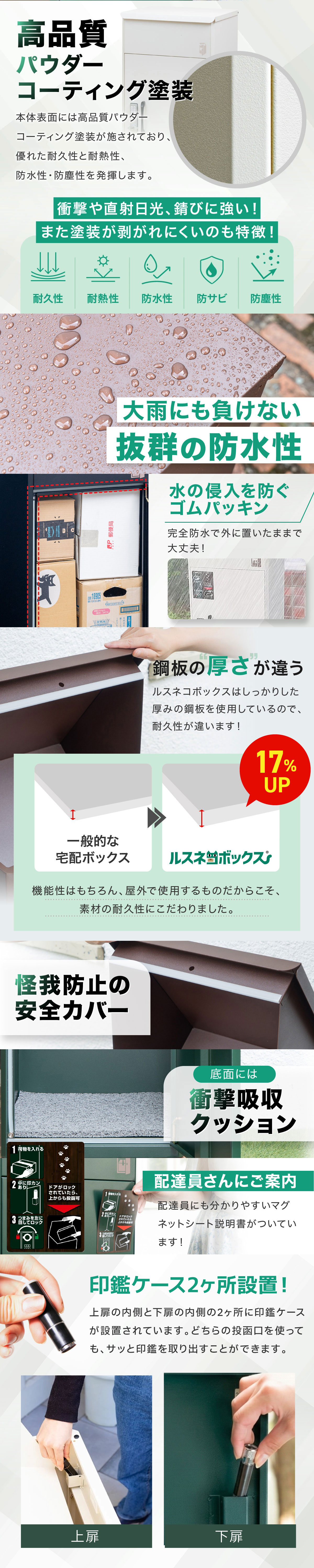 よく検索されるキーワード:宅配ボックス ポスト一体型 後付け 据え置き 複数回 2個目 オシャレ 鍵付き ダイヤルキー 白 黒 緑 ブルー 茶色 郵便受け 置き型ポスト 戸建 宅配ポスト スタンドポスト 郵便ポスト メールボックス 新聞受け 新生活 大容量 シンプル メールBOX 宅配BOX 戸建後付け 宅配ボックスポスト一体 ゼロリターンキー ポイント利用 ヤマソロ pykes peak パイクスピーク