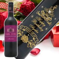 ドイツ産ノンアルコールワインのボトルに美しいデザイン、お名前を彫刻、クリスタルガラス製のスワロフスキーを装飾したオリジナルギフトです☆