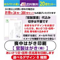喪中はがき印刷 日本郵便 官製葉書 送料無料 20枚セット〜