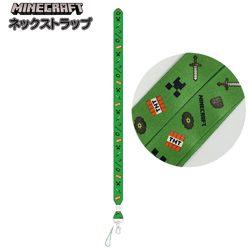 マインクラフト ネックストラップ ( グリーン ) 18336 マイクラ ストラップ ICストラップ ランヤード 首掛け 平紐 クリーパー Creeper mob MCT-NS-GN