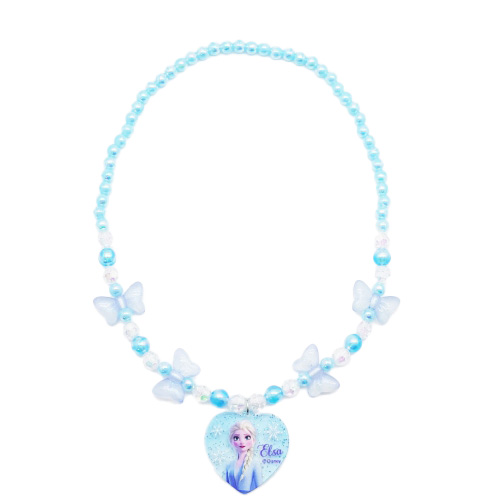 アナと雪の女王2 リボンビーズネックレスは、ディズニーの人気キャラクター、エルサが描かれたハート型のチャームが特徴です。
