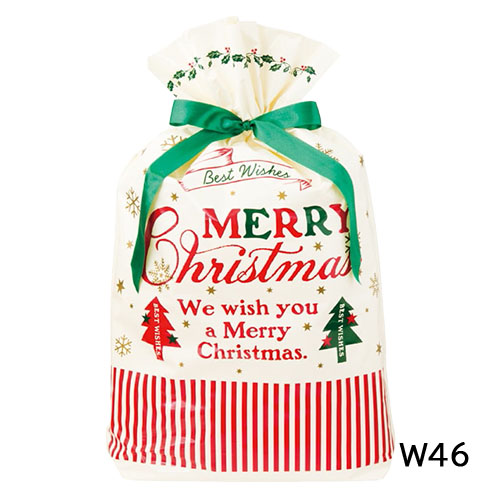 クリスマスラッピング 袋 リボン付きギフトバッグ ( クラシカルクリスマス / 幅46 ) etc0049 底 マチあり 底マチ リボン 巾着 袋 巾着袋 x'mas