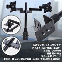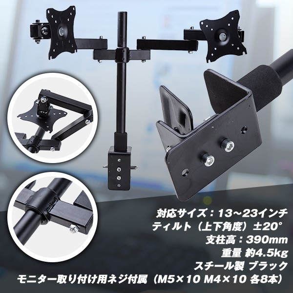 モニタースタンド 13 型 〜 23 型 対応 ダブル 左右 2画面 設置 デスク 収納 カスタム ブラック 黒 パソコン スチール 天板クランプ式 フレキシブル PC