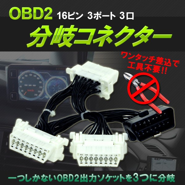 OBD2 3分岐ケーブル 分岐ケーブル 16PIN 分岐ハーネス 3ポート OBD-II メーター 汎用 カプラー 車 ストレートオスカプラー L型メスカプラー 3ポート
