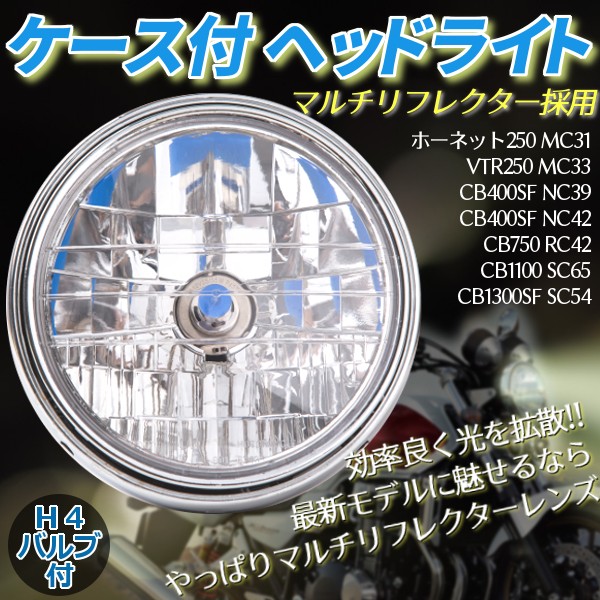 ヘッドライト マルチリフレクター CB1300SF CB400SF ホーネット250 VTR250 ケース付 社外品 ホンダ HONDA 交換 パーツ ドレスアップ カスタム