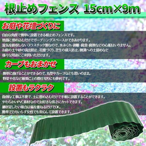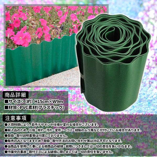 花壇 仕切り 15cm × 9m 根止め 囲い 土ストッパー 芝 根止め 高さ ウェーブエッジ ブロック フェンス プラスチック 柵 打ち込み 雑草 芝 根 庭 ガーデニング
