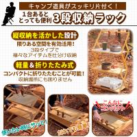 収納バック付き♪キャンプ道具がすっきり片付く折りたたみ式3段ラック♪