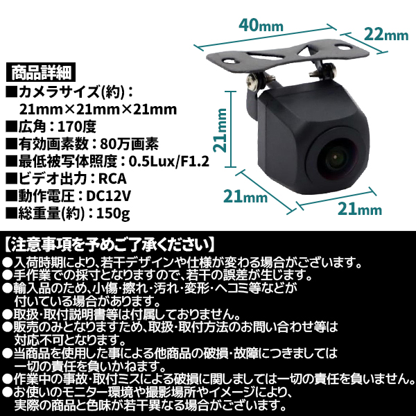 バックカメラ 80万画素 後付け 車用 本体 超小型 防水 広角150度 CB2121BLC 後付け