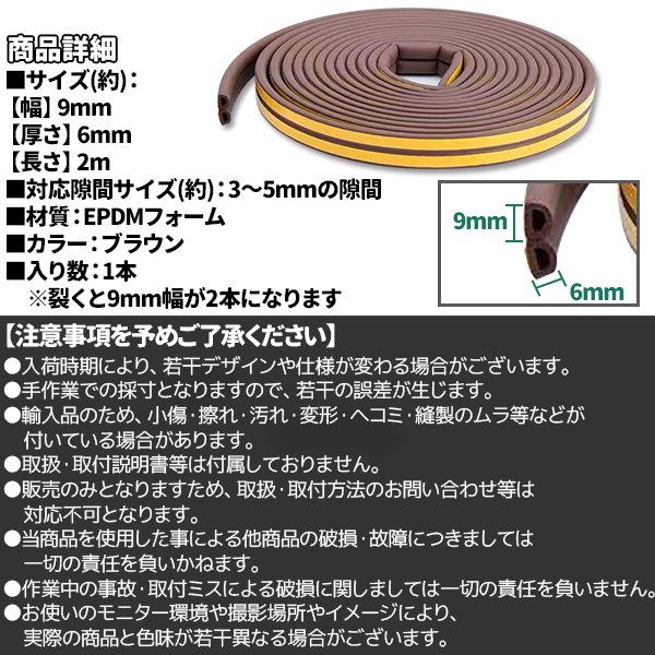 ・サイズ:幅9mm、厚さ6mm、長さ2m (※約3〜5mmの隙間に対応)