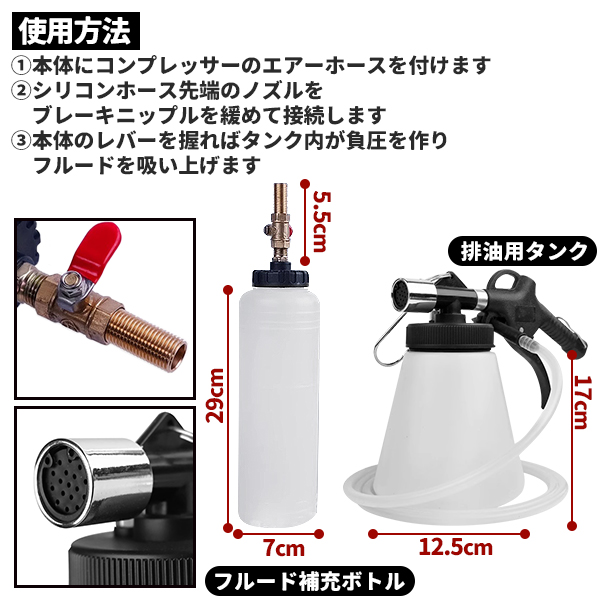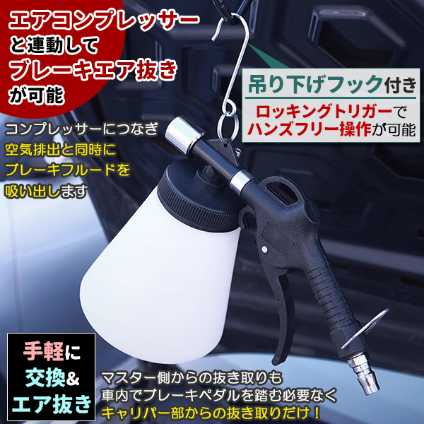 エアー式 ワンマン ブレーキブリーダー セット エアー抜き 工具 1L ホース 1.5m 仕様 エアーバキューム ブリーディング キット 工具