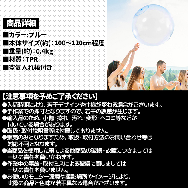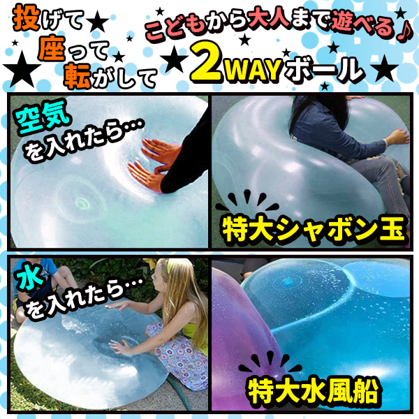 バブルボール 特大 120cm 割れない 巨大 風船 水風船 ビーチボール 大きい 乗れる 繰り返し 子供 子ども 水遊び おもちゃ アウトドア 空気入れ 青 ブルー