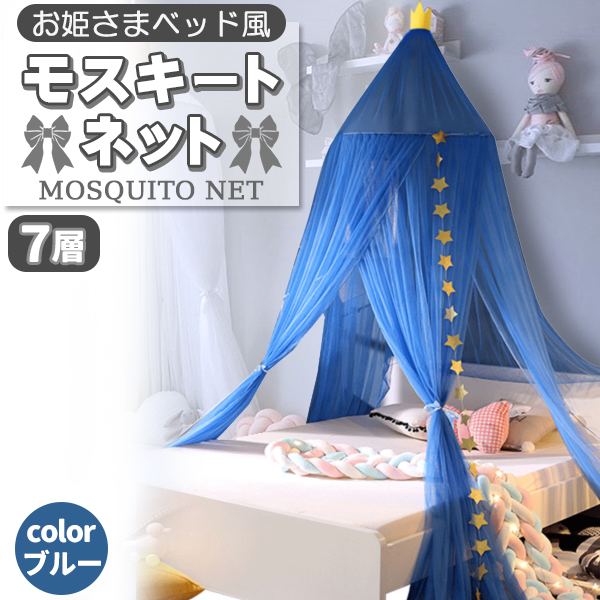 7層紗製 天蓋 キャノピー モスキートネット 子供部屋 スリーピングキャノピー モスキーノテント 天蓋ベッド風 蚊帳 かや 青