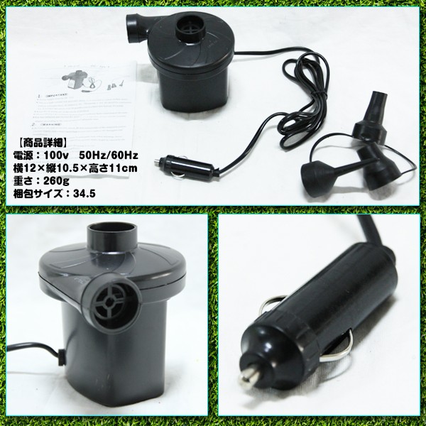 車用 電動 プール 空気入れ ノズル 3種類 エアポンプ シガー コンパクト プール ゴムボート キャンプ ベッド キャンプ アウトドア 車中泊 エアベッド