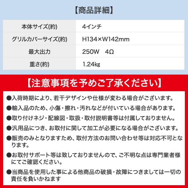 カースピーカー 10cm 2個セット 置き型 ツイーター ツィーター ウーハー ウーファー カーオーディオ スピーカー 小型 音響 高音質 音質 置型 取り付け 250W