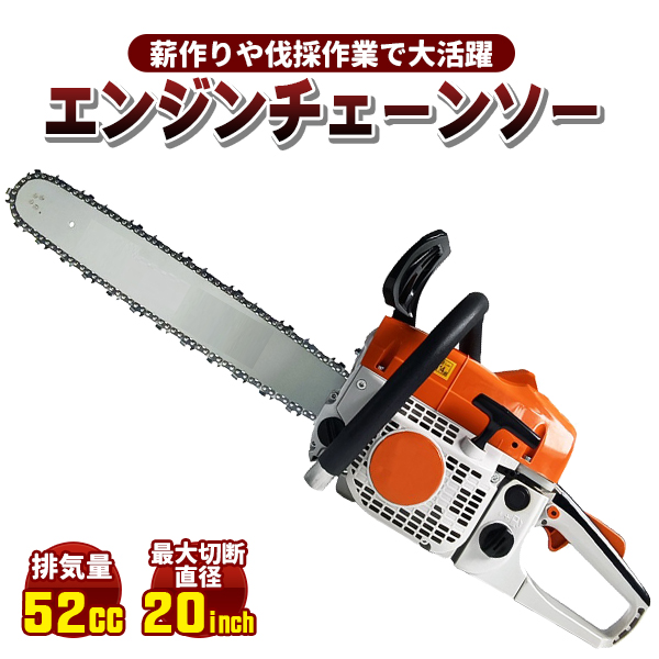 チェーンソー 52 cc ソーチェーン 高性能 エンジン バー 50cm ロング 5200型 林業 丸太 DIY 日曜大工 薪割り 庭 枝木 BBQ キャンプ