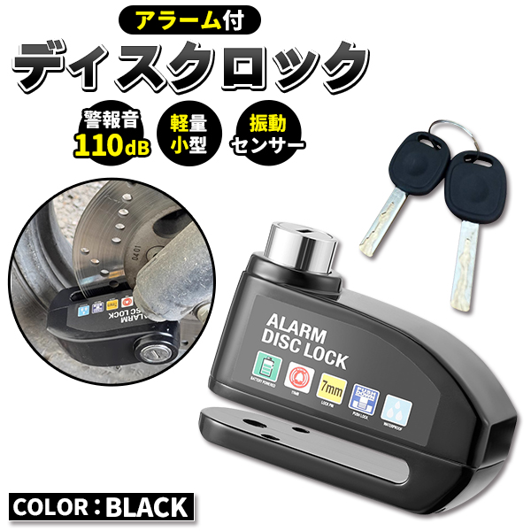 ディスクロック ディスクブレーキロック セキュリティ 盗難防止 ロック ブラック 耐久性 振動感知 自転車ロック 軽量 警報アラーム 大音量 アウトドア シンプル