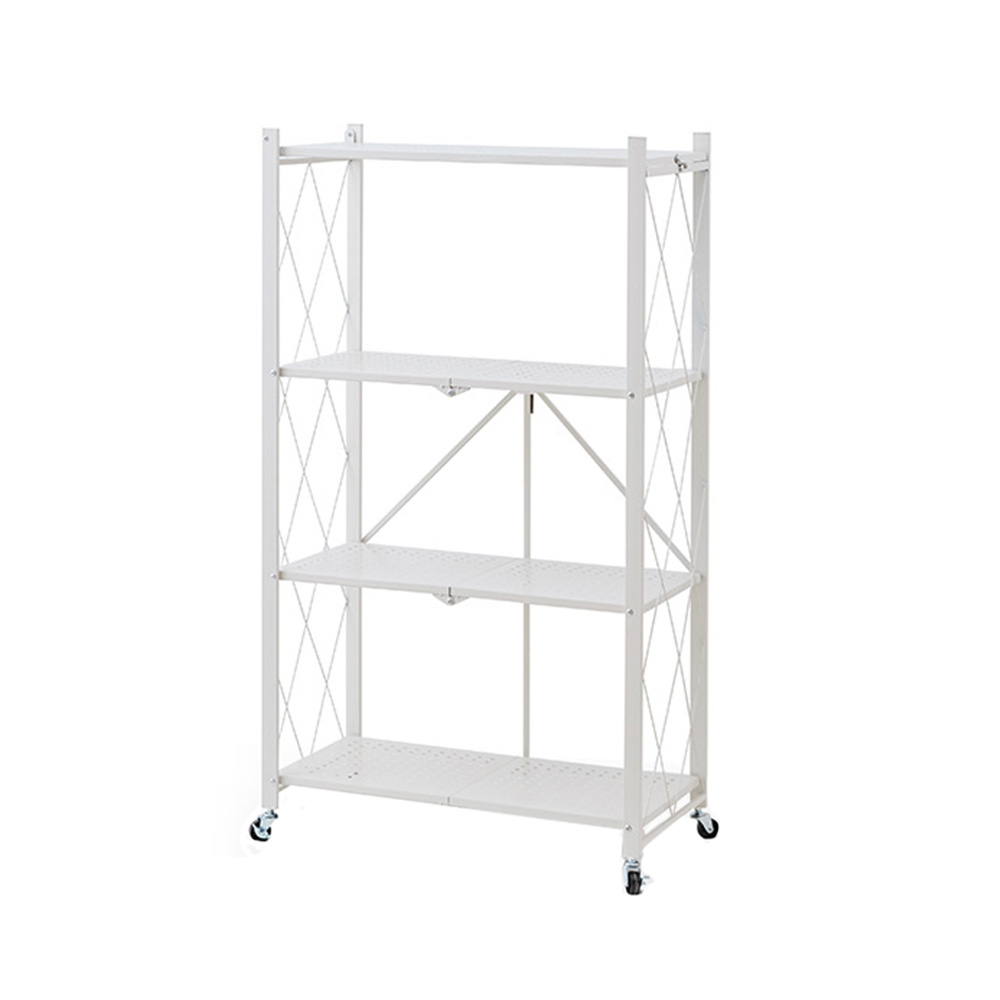 スチールラック 4段 スチール メタルラック スチールシェルフ ワイヤーラック メタルシェルフ ホワイト 白 折り畳み 折りたたみ 食器棚