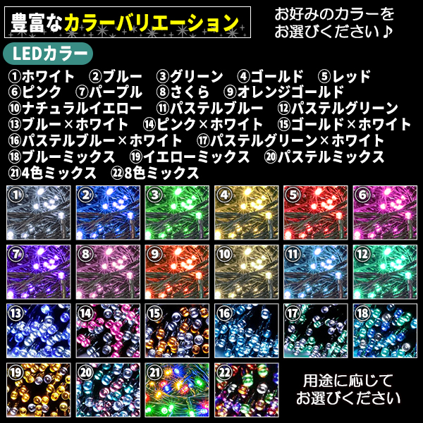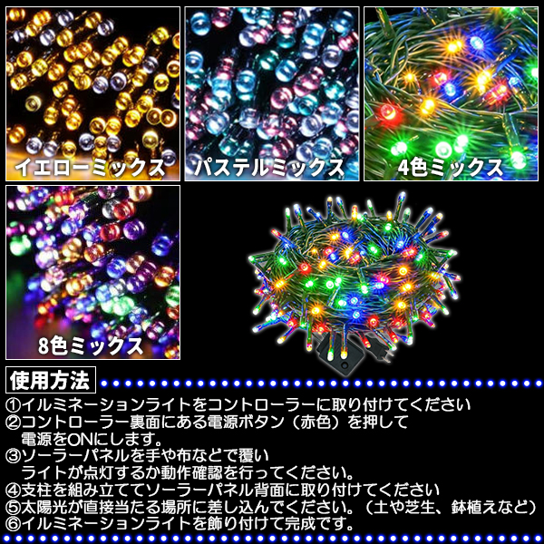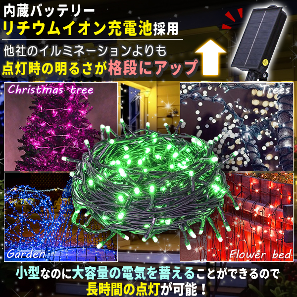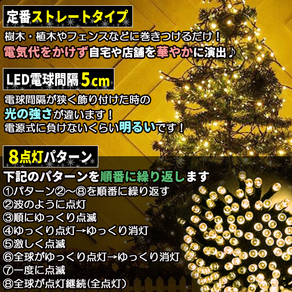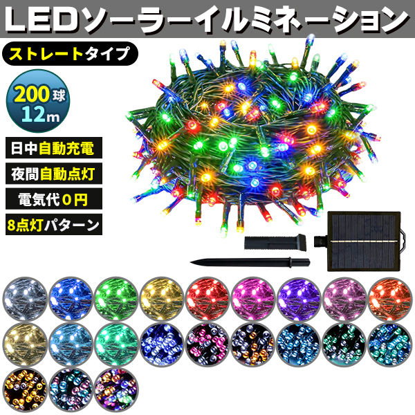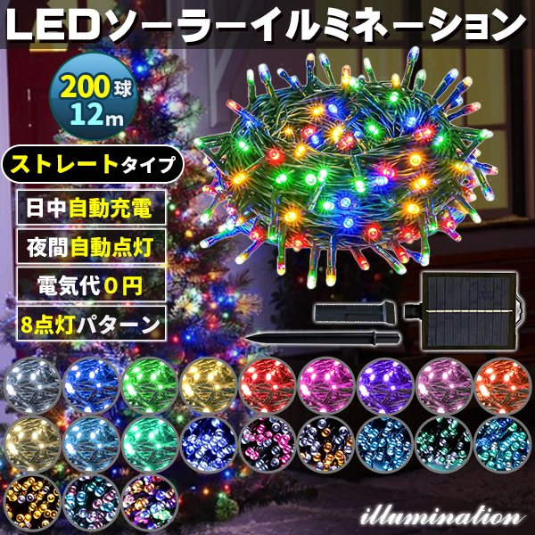 ソーラー イルミネーション 屋外 クリスマス ストレート 屋外用 イルミネーションライト 200球 各色