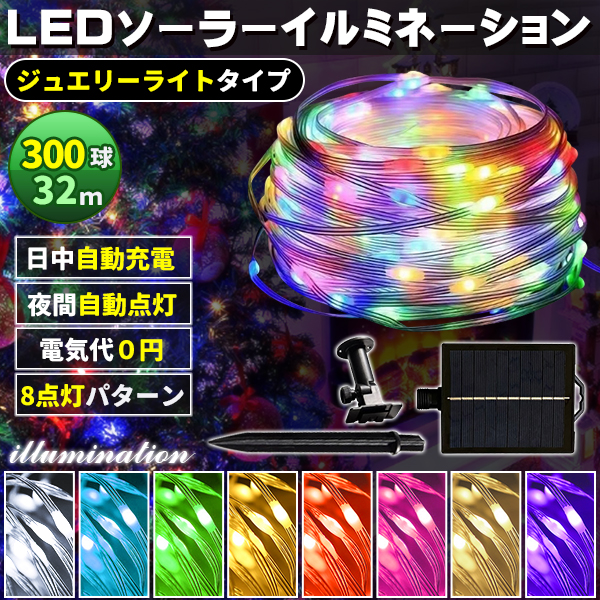 ソーラー イルミネーション 屋外 クリスマス ジュエリー屋外用 イルミネーションライト 300球 パステルMix