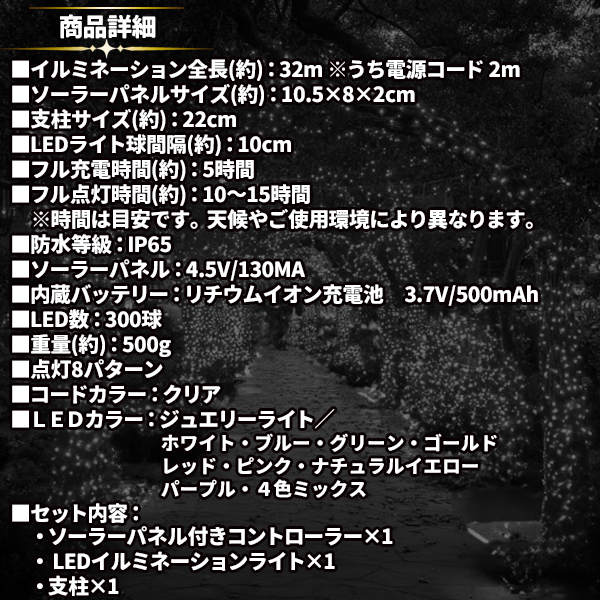 イルミネーション全長:約32m (うち電源コード :約 2m)