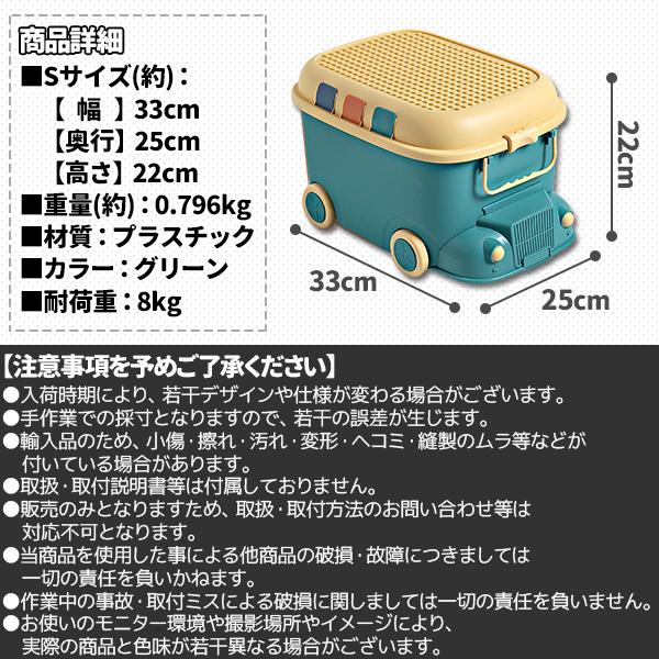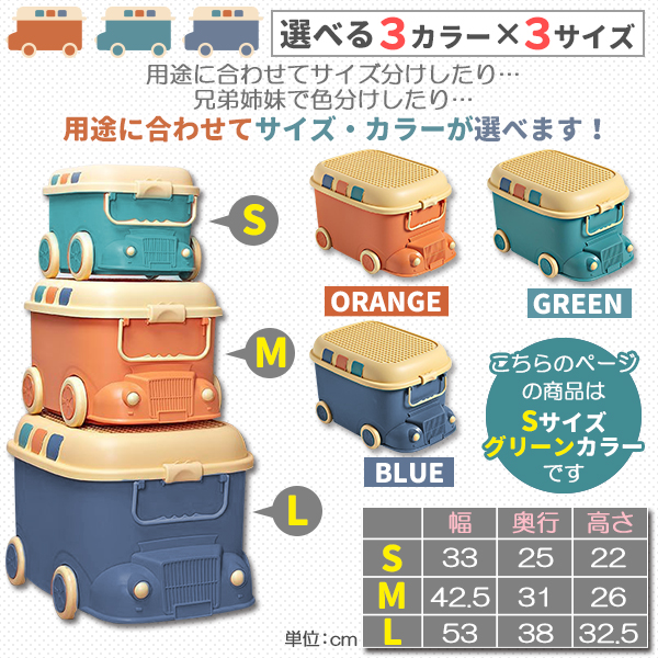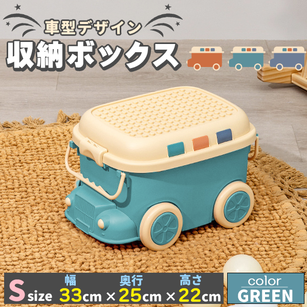 おもちゃ 収納 ボックス ケース キャスター 大容量 おもちゃ箱 蓋付き 玩具箱 フタ 収納ケース sサイズ グリーン