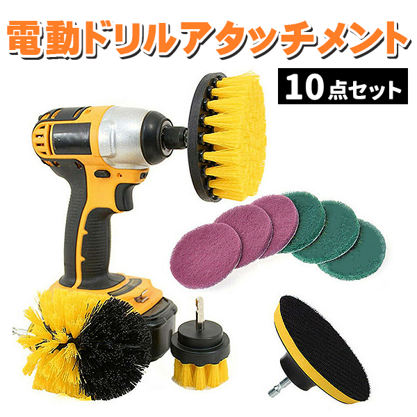 電動ドリル用 ブラシ 掃除ブラシ 10点セット アタッチメント キッチン 台所 床 浴漕 お風呂 ポリッシャー バフ ポリッシング スポンジ