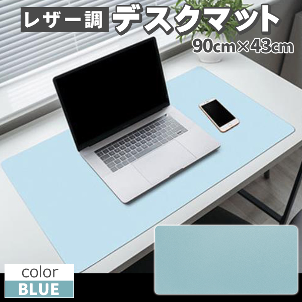 デスクマット マウス対応 レザー デスクマット 大型マウスパッド 滑り止め 厚さ2mm 90×43cm 裏面 スエード 青
